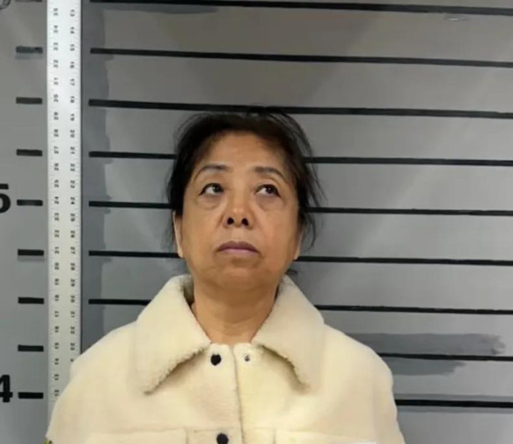 吴佩慈婆婆被逮捕的照片也被流出,崔丽杰穿着白色的毛毛外套,里面搭配红色睡衣,手里拿着一张纸质文件,靠在墙边拍照。