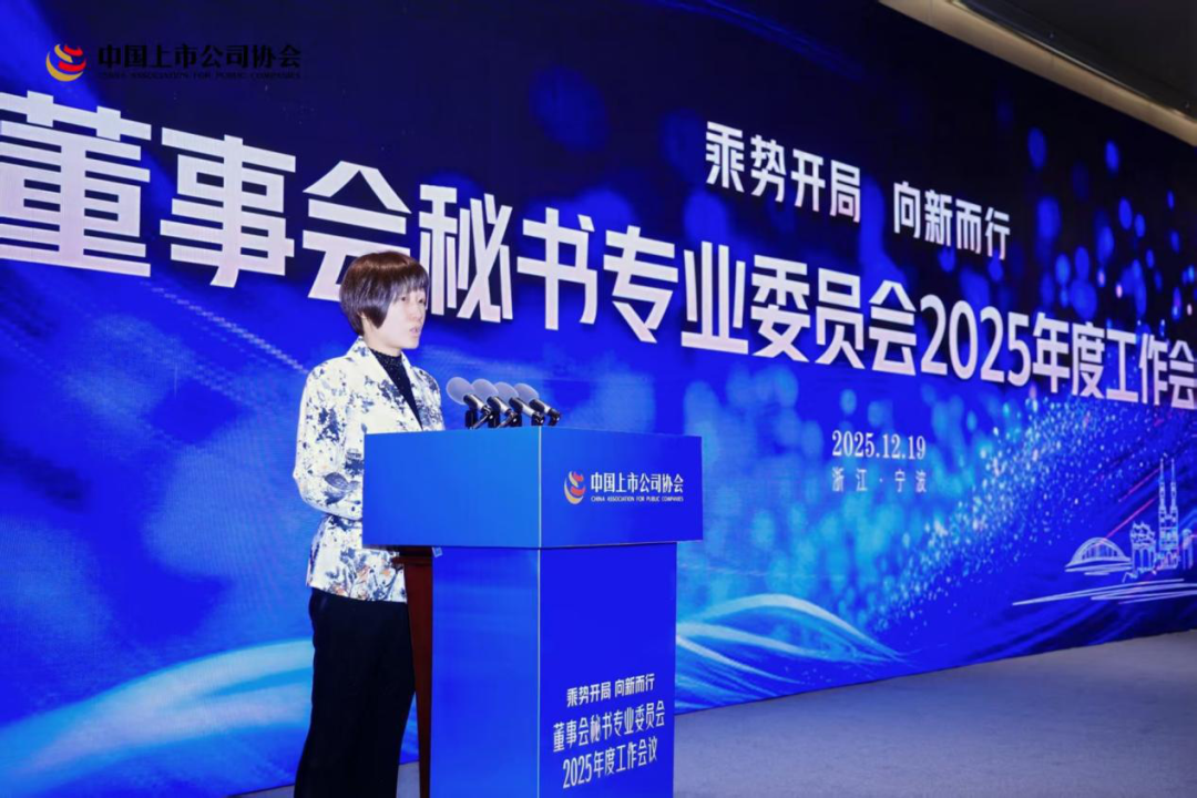 12月19日,中国上市公司协会董事会秘书专业委员会(以下简称董秘委)2025年度工作会议在宁波召开。会议由董秘委执行副主任委员、宝钢股份(600019)副总经理、财务总监、董事会秘书王娟主持;协会党委书记魏峰,宁波证监局党委书记、局长郑松山出席会议。党委委员、副会长余辉出席会议并致辞。董秘委委员和部分上市公司董事会秘书、证券事务代表等390余人参加会议。